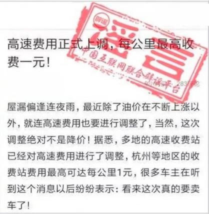 【真相】中國(guó)互聯(lián)網(wǎng)聯(lián)合辟謠平臺(tái)向主管部門(mén)求證得知,該消息是謠言,純屬空穴來(lái)風(fēng)。浙江交通投資集團(tuán)有限公司相關(guān)運(yùn)營(yíng)人員向媒體證實(shí),“并無(wú)高速收費(fèi)上調(diào)說(shuō)法”。
