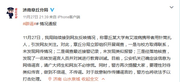 【真相】多地網(wǎng)警紛紛辟謠“艾滋針”,提醒網(wǎng)友不要恐慌。