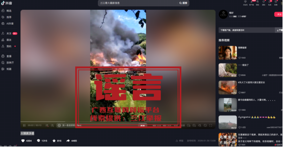 经丹洲镇人民政府核实,视频中的火灾场景并非丹洲镇境内,且该镇近期未发生过类似火灾事故,视频内容不实。